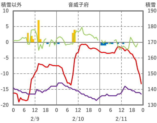 | 日 | 時 | 気温 | 降水 | 風向/風速 | 日照 | 積雪 | 降雪 |