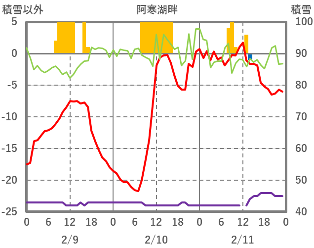 | 日 | 時 | 気温 | 降水 | 風向/風速 | 日照 | 積雪 | 降雪 |