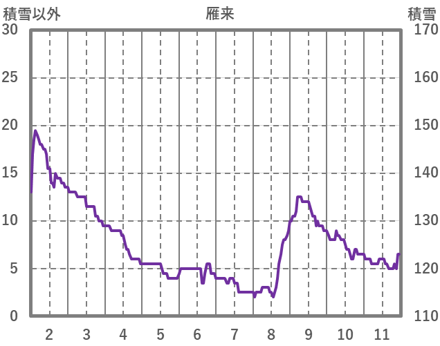 | 日 | 時 | 気温 | 降水 | 風向/風速 | 日照 | 積雪 | 降雪 |