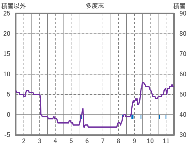 | 日 | 時 | 気温 | 降水 | 風向/風速 | 日照 | 積雪 | 降雪 |