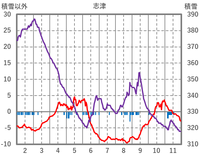 | 日 | 時 | 気温 | 降水 | 風向/風速 | 日照 | 積雪 | 降雪 |