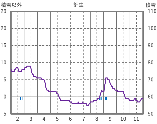 | 日 | 時 | 気温 | 降水 | 風向/風速 | 日照 | 積雪 | 降雪 |