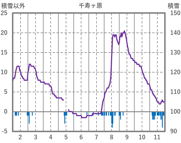 | 日 | 時 | 気温 | 降水 | 風向/風速 | 日照 | 積雪 | 降雪 |
