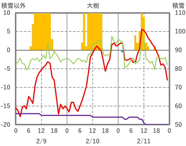 | 日 | 時 | 気温 | 降水 | 風向/風速 | 日照 | 積雪 | 降雪 |