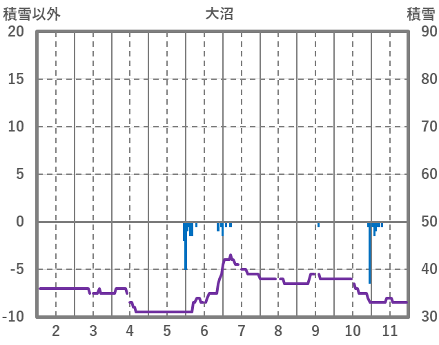 | 日 | 時 | 気温 | 降水 | 風向/風速 | 日照 | 積雪 | 降雪 |