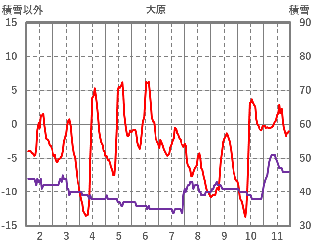 | 日 | 時 | 気温 | 降水 | 風向/風速 | 日照 | 積雪 | 降雪 |