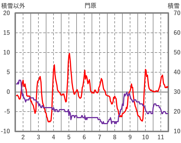 | 日 | 時 | 気温 | 降水 | 風向/風速 | 日照 | 積雪 | 降雪 |