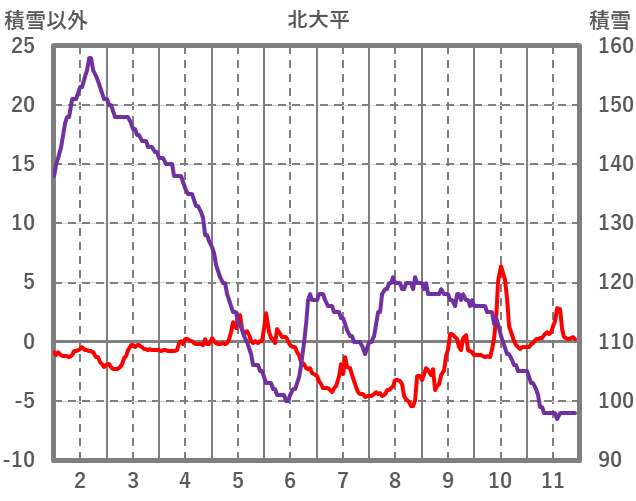 | 日 | 時 | 気温 | 降水 | 風向/風速 | 日照 | 積雪 | 降雪 |