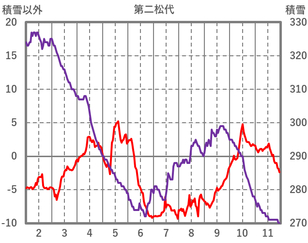 | 日 | 時 | 気温 | 降水 | 風向/風速 | 日照 | 積雪 | 降雪 |