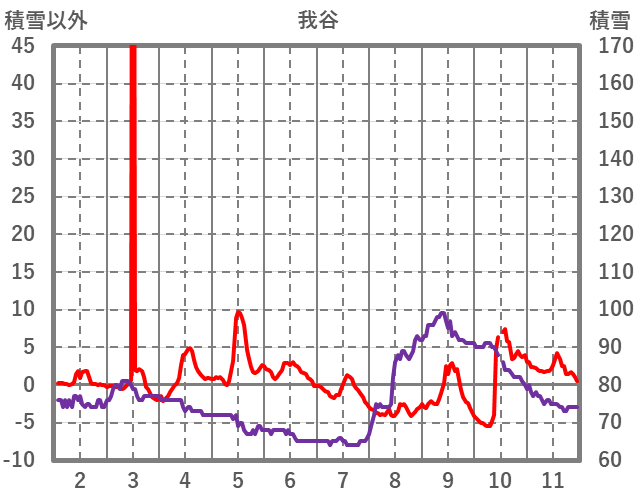 | 日 | 時 | 気温 | 降水 | 風向/風速 | 日照 | 積雪 | 降雪 |