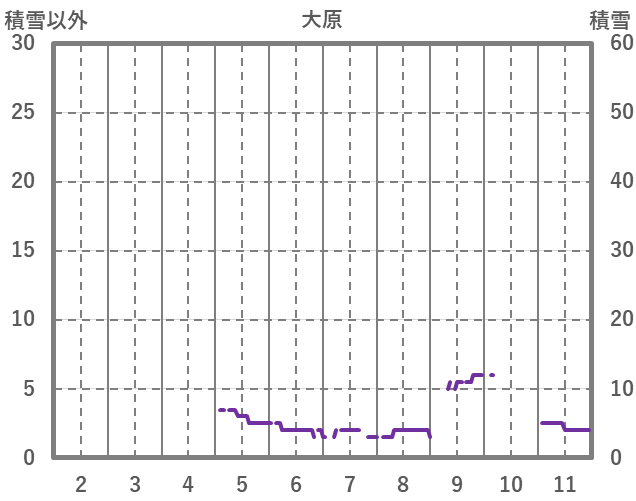 | 日 | 時 | 気温 | 降水 | 風向/風速 | 日照 | 積雪 | 降雪 |