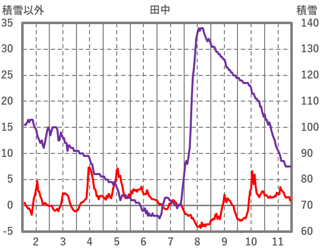 | 日 | 時 | 気温 | 降水 | 風向/風速 | 日照 | 積雪 | 降雪 |