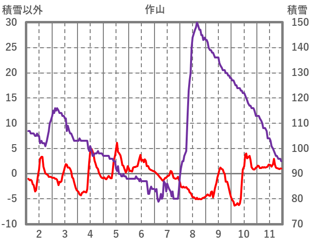| 日 | 時 | 気温 | 降水 | 風向/風速 | 日照 | 積雪 | 降雪 |