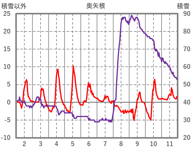 | 日 | 時 | 気温 | 降水 | 風向/風速 | 日照 | 積雪 | 降雪 |