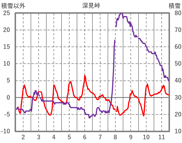 | 日 | 時 | 気温 | 降水 | 風向/風速 | 日照 | 積雪 | 降雪 |