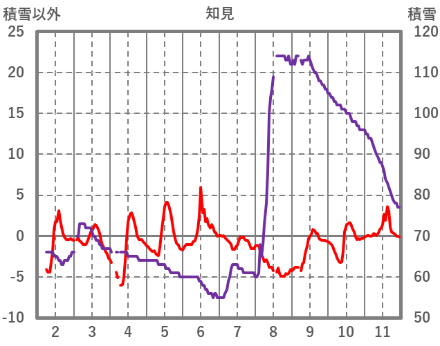 | 日 | 時 | 気温 | 降水 | 風向/風速 | 日照 | 積雪 | 降雪 |