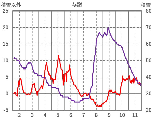 | 日 | 時 | 気温 | 降水 | 風向/風速 | 日照 | 積雪 | 降雪 |