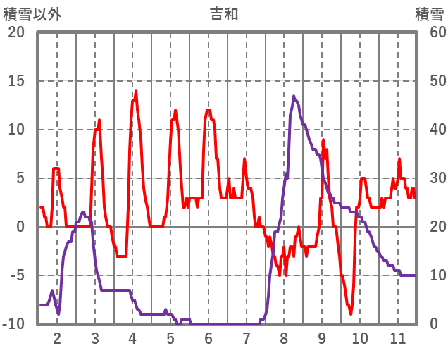 | 日 | 時 | 気温 | 降水 | 風向/風速 | 日照 | 積雪 | 降雪 |