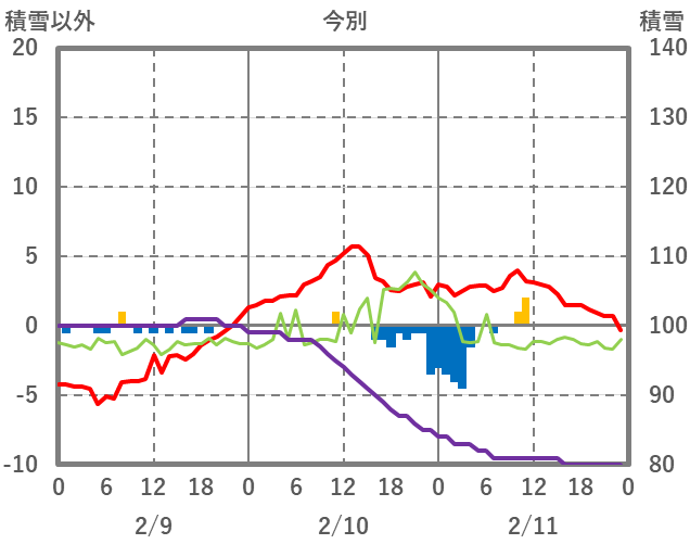 | 日 | 時 | 気温 | 降水 | 風向/風速 | 日照 | 積雪 | 降雪 |