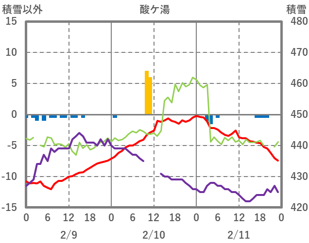 | 日 | 時 | 気温 | 降水 | 風向/風速 | 日照 | 積雪 | 降雪 |