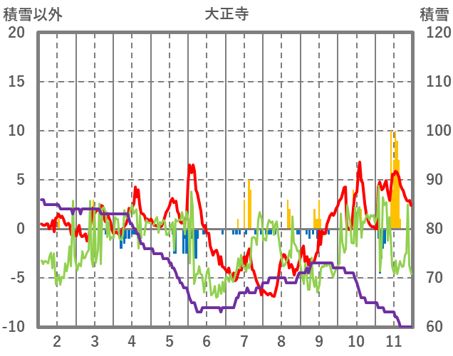 | 日 | 時 | 気温 | 降水 | 風向/風速 | 日照 | 積雪 | 降雪 |