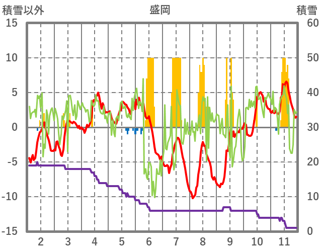 | 日 | 時 | 気温 | 降水 | 風向/風速 | 日照 | 積雪 | 降雪 |