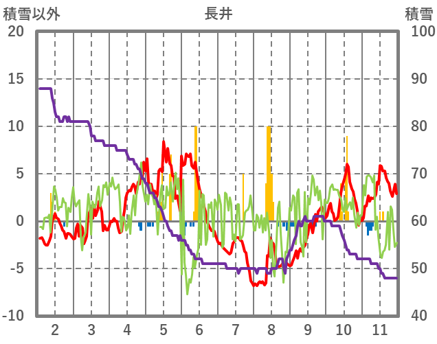 | 日 | 時 | 気温 | 降水 | 風向/風速 | 日照 | 積雪 | 降雪 |