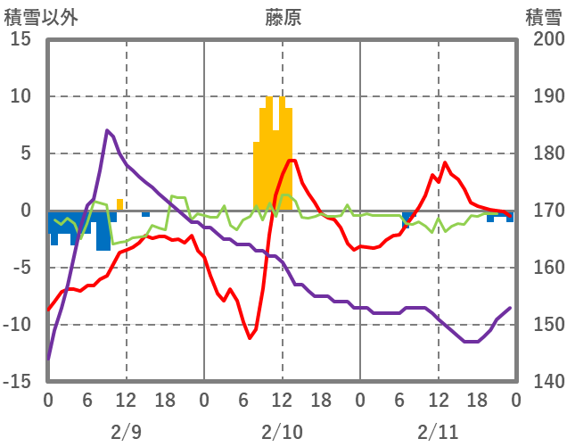 | 日 | 時 | 気温 | 降水 | 風向/風速 | 日照 | 積雪 | 降雪 |