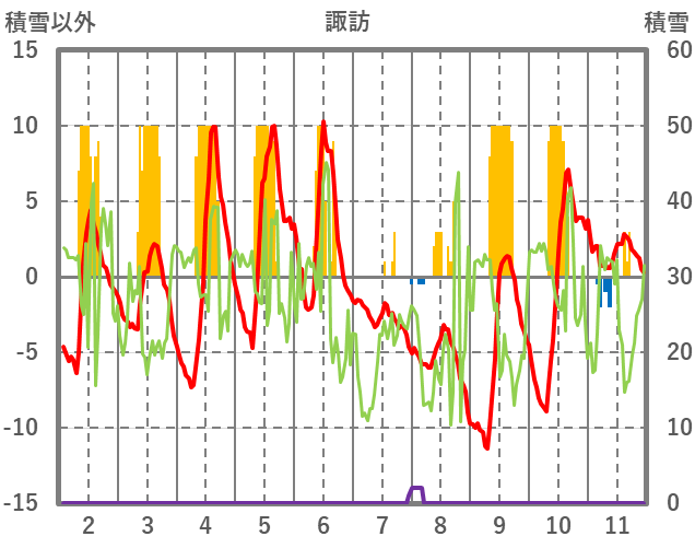 | 日 | 時 | 気温 | 降水 | 風向/風速 | 日照 | 積雪 | 降雪 |
