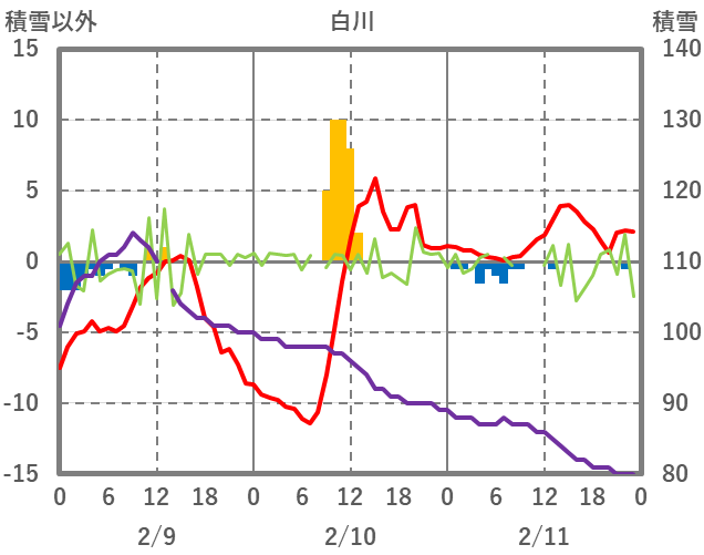 | 日 | 時 | 気温 | 降水 | 風向/風速 | 日照 | 積雪 | 降雪 |