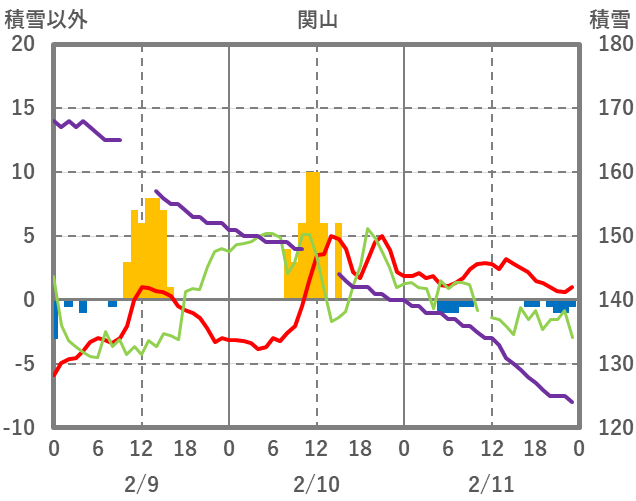 | 日 | 時 | 気温 | 降水 | 風向/風速 | 日照 | 積雪 | 降雪 |