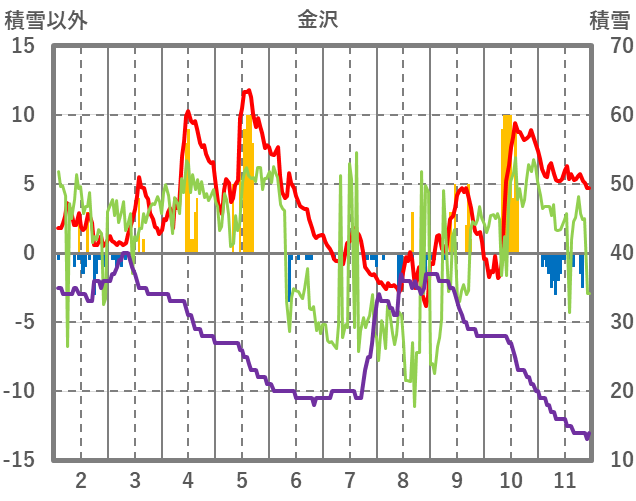 | 日 | 時 | 気温 | 降水 | 風向/風速 | 日照 | 積雪 | 降雪 |
