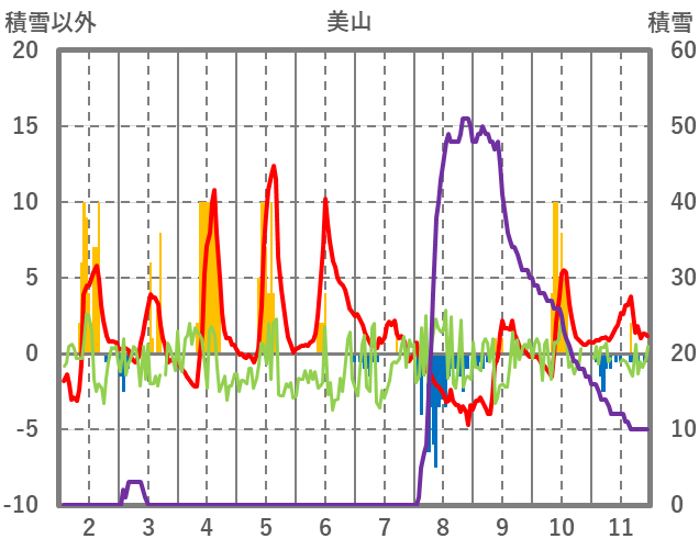 | 日 | 時 | 気温 | 降水 | 風向/風速 | 日照 | 積雪 | 降雪 |