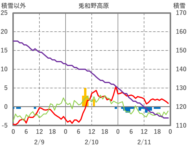 | 日 | 時 | 気温 | 降水 | 風向/風速 | 日照 | 積雪 | 降雪 |