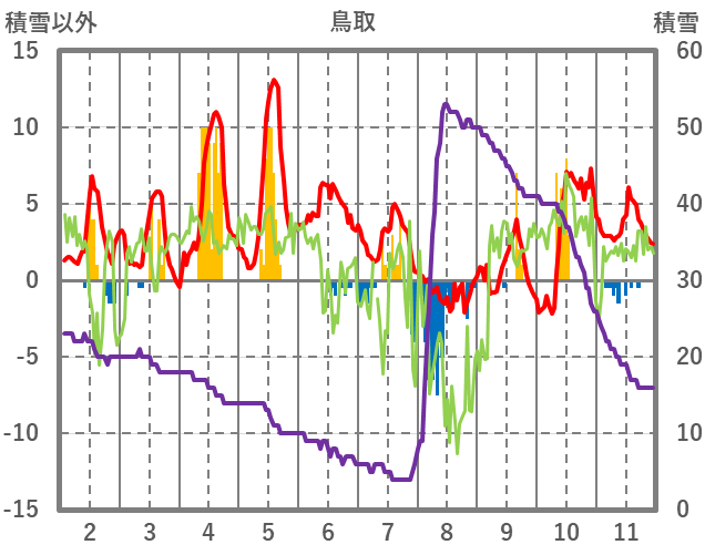 | 日 | 時 | 気温 | 降水 | 風向/風速 | 日照 | 積雪 | 降雪 |