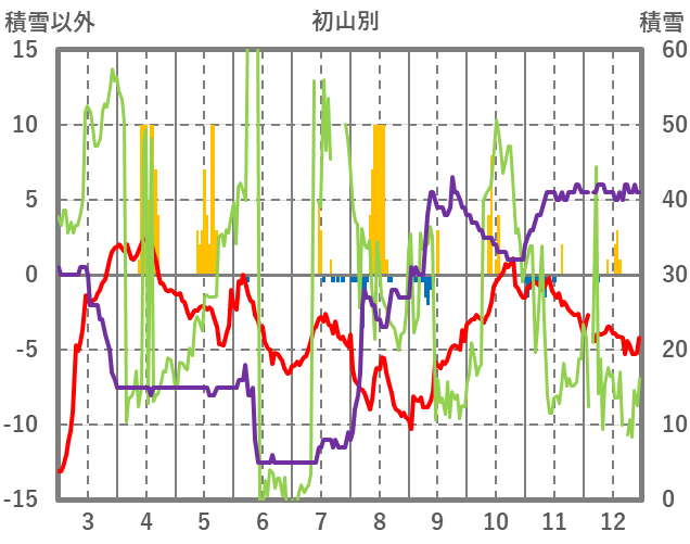 | 日 | 時 | 気温 | 降水 | 風向/風速 | 日照 | 積雪 | 降雪 |