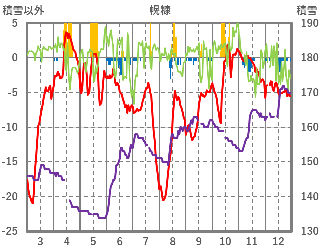 | 日 | 時 | 気温 | 降水 | 風向/風速 | 日照 | 積雪 | 降雪 |