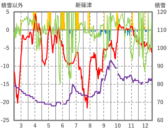 | 日 | 時 | 気温 | 降水 | 風向/風速 | 日照 | 積雪 | 降雪 |