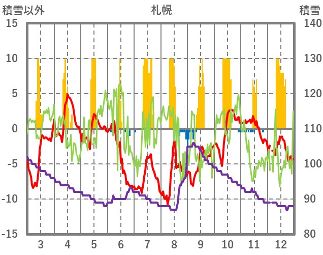 | 日 | 時 | 気温 | 降水 | 風向/風速 | 日照 | 積雪 | 降雪 |