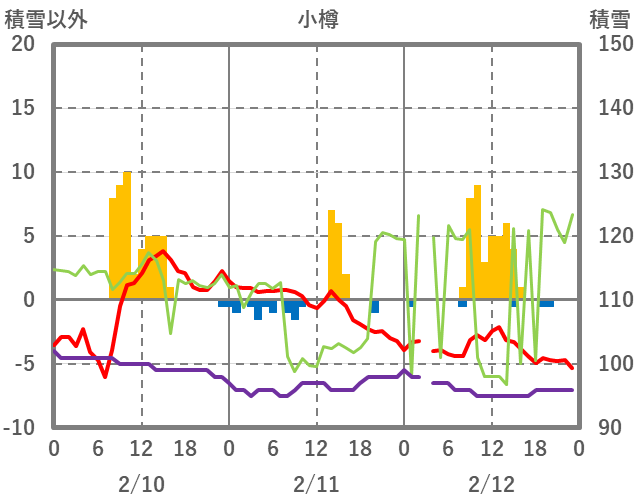 | 日 | 時 | 気温 | 降水 | 風向/風速 | 日照 | 積雪 | 降雪 |