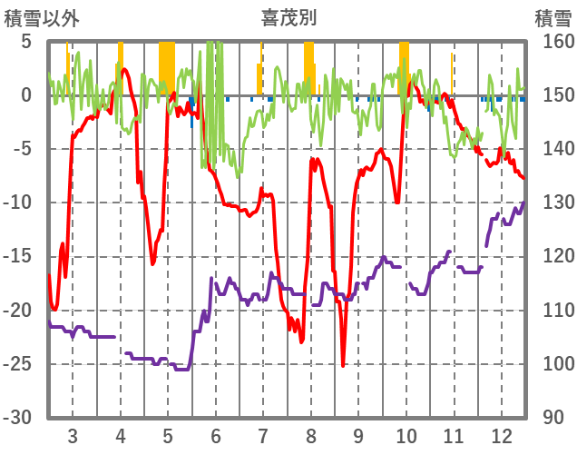 | 日 | 時 | 気温 | 降水 | 風向/風速 | 日照 | 積雪 | 降雪 |
