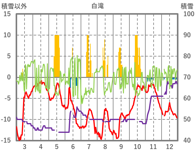 | 日 | 時 | 気温 | 降水 | 風向/風速 | 日照 | 積雪 | 降雪 |