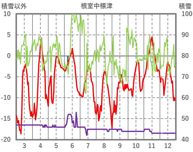 | 日 | 時 | 気温 | 降水 | 風向/風速 | 日照 | 積雪 | 降雪 |