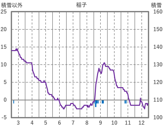 | 日 | 時 | 気温 | 降水 | 風向/風速 | 日照 | 積雪 | 降雪 |