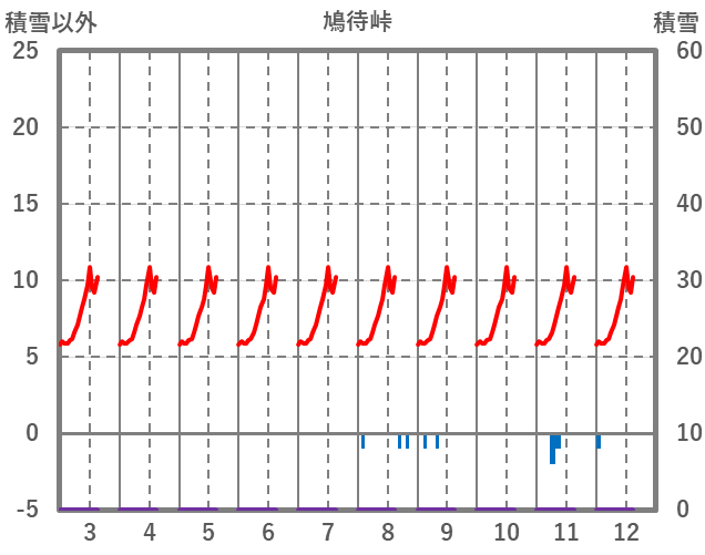 | 日 | 時 | 気温 | 降水 | 風向/風速 | 日照 | 積雪 | 降雪 |