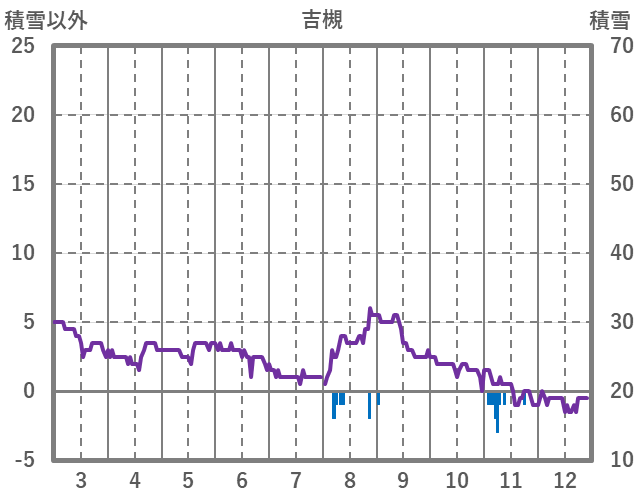 | 日 | 時 | 気温 | 降水 | 風向/風速 | 日照 | 積雪 | 降雪 |