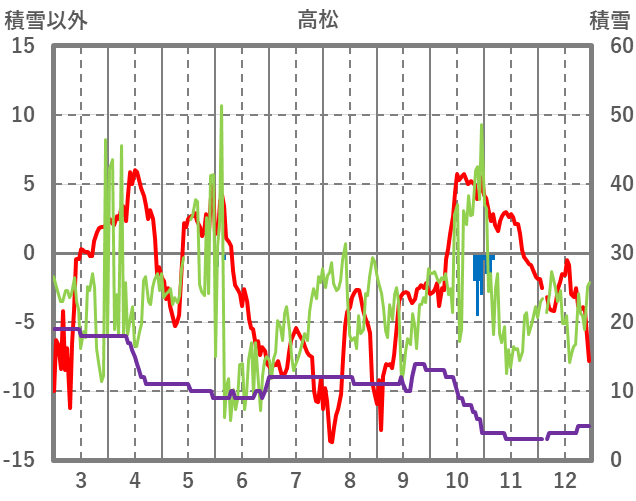| 日 | 時 | 気温 | 降水 | 風向/風速 | 日照 | 積雪 | 降雪 |