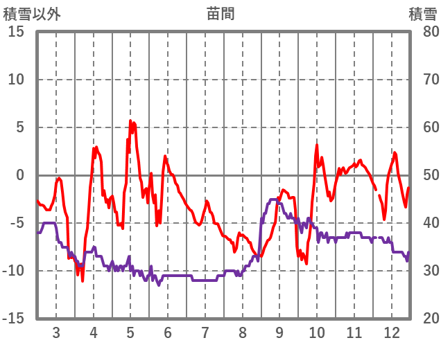 | 日 | 時 | 気温 | 降水 | 風向/風速 | 日照 | 積雪 | 降雪 |