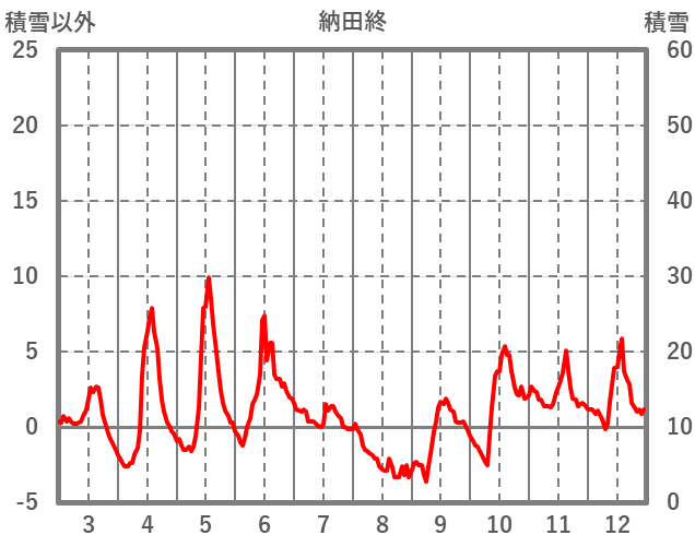 | 日 | 時 | 気温 | 降水 | 風向/風速 | 日照 | 積雪 | 降雪 |