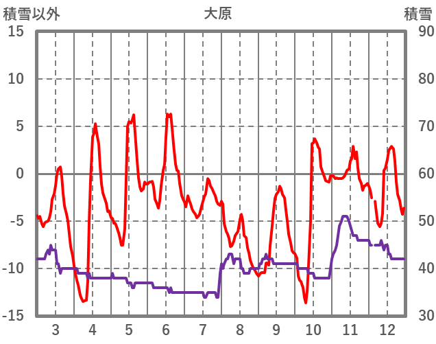 | 日 | 時 | 気温 | 降水 | 風向/風速 | 日照 | 積雪 | 降雪 |